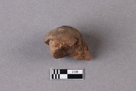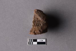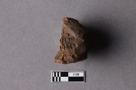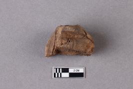 | Description / विवरण | Broken clay lump bearing the partially available Mahavihara legend, arranged in two lines within a circular incuse with a deer motif above. Reed marks are seen at the back. Fingerprints are seen all over the incuse. |