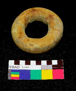 | Description / विवरण | Complete, thick terracotta ring is dull red in color, made of well levigated clay, having circular clay and smooth body. |