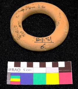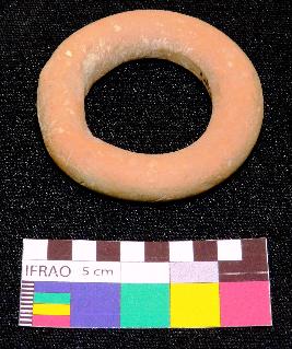 | Description / विवरण | Intact thick circular shaped terracotta ring is red in color, made of well levigated clay, having circular section and smooth body. |