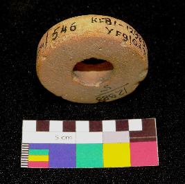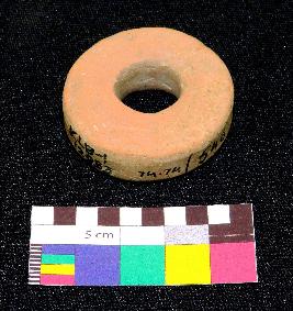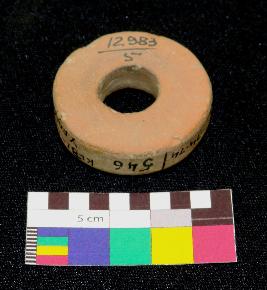 | Description / विवरण | Intact, circular shaped terracotta ring is red in color, made of well levigated clay, having flat circular ends with a hole in the center, smooth body, and circular section. |