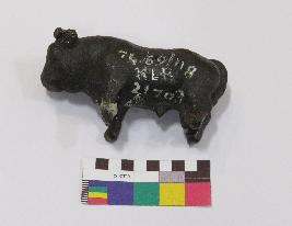 | Description / विवरण | Bull figurine made of copper is small in size, having broken horns, ears, elongated face, eyes, open mouth, small neck, elongated body, four legs and a tail. Other features are also very proportioned and clearly visible. |
