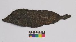 | Description / विवरण | Leaf shaped thin copper spear head is having pointed top, blunt working edge and a small tang. |