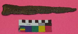 | Description / विवरण | Triangular shaped, thin copper knife is having pointed top, triangular body, sharp sides and broken end. |