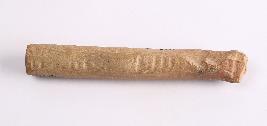 | Description / विवरण | Well fired, terracotta scale used for measurement, is dull red in color, made of well levigated clay, having damaged circular sides, elongated smooth body with two sets of incised vertical line marking and circular section. |