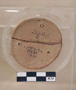 | Description / विवरण | Well fired, handmade, circular shaped terracotta pan is red in color, made of well levigated clay, having smooth surface, circular base, and three perforations near the circumference. |