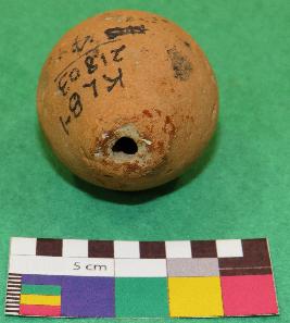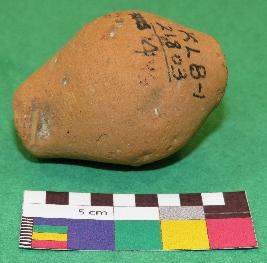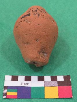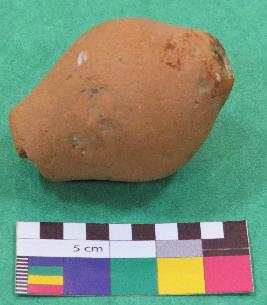 | Description / विवरण | Well fired, barrel shaped terracotta plumb bob is red in color, made of well levigated clay having narrow mouth, elongated smooth body and a perforation from top to bottom. |