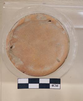 | Description / विवरण | Circular shaped terracotta pan is red in color, made of well levigated clay, having smooth surface, circular base, ridge at the periphery and three oblique perforations near the circumference. |