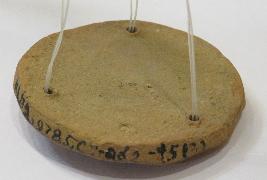 | Description / विवरण | Circular shaped terracotta pan is red in color, made of well levigated clay, having smooth surface, circular base, and three perforations near the circumference. |