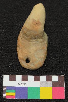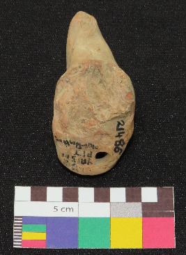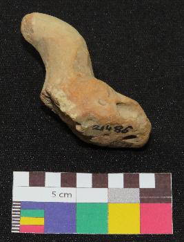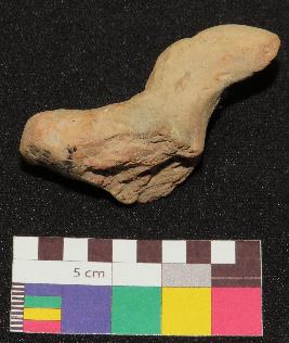 | Description / विवरण | Well fired, handmade, headless terracotta figure of bird, is in red color, made of fine clay, having long curved neck, body and a tail with a curved end. The figure has a perforation at tail and a hole on one side of body. |