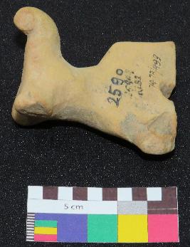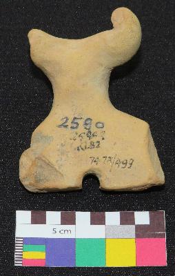 | Description / विवरण | Well fired, dull red color, terracotta animal figure fragmentary part of mechanical toy, is made of well levigated clay. It is having twisted horns, elongated face with pointed nose, curved neck and chest with probably hole. No facial features are clearly visible on face. |