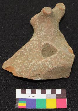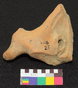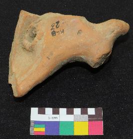 | Description / विवरण | Well fired, red color terracotta animal figure made of well levigated clay, having broken twisted horn, face, nose, curved neck, body and hole at chest. |