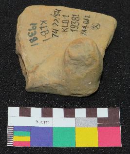 | Description / विवरण | Well fired fragment of terracotta toy cot is in red color, made of well levigated clay, having probably rectangular flat top and broken leg. |