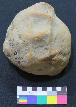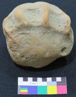 | Description / विवरण | Handmade, red color almost round shaped, terracotta cake is made of semi-coarse material having four deep finger impressions on top and flat base . |