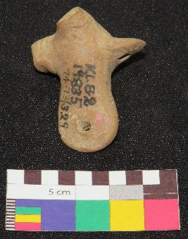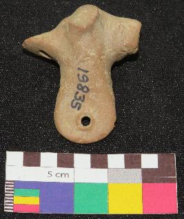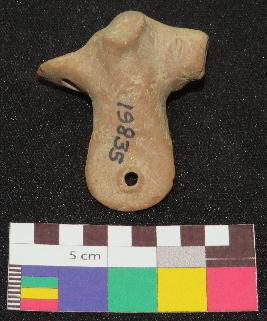 | Description / विवरण | Well fired, brownish color terracotta animal figure fragmentary part of mechanical toy, is made of well levigated clay, having broken horn, elongated face with nose, pinched hump and long neck with curved end. It has two hole one at hump other is at lower part of neck. It doesn t have any facial features. |