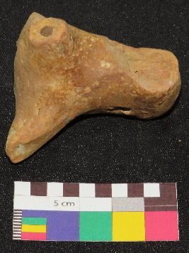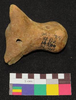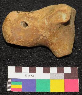 | Description / विवरण | Well fired, brownish color terracotta animal figure fragmentary part of mechanical toy, is made of well levigated clay, having upturned horn, elongated face, nose and long neck. It has two hole one at nose other is at lower part of neck. It doesn t have any facial features. |