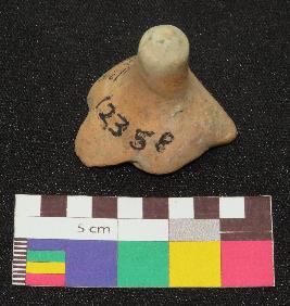 | Description / विवरण | Handmade, red color terracotta gamesman is made of well levigated clay having smooth body, long knob with pointed conical top and footed base. |