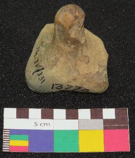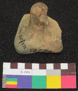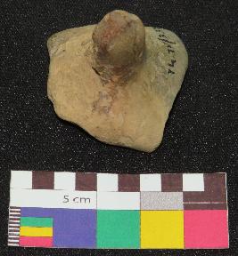 | Description / विवरण | Medium fired, terracotta gamesman is greyish in color, made of fine clay having thick knob and probably square shallow base with four feet. Three foot are intact and rest are broken. |