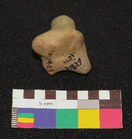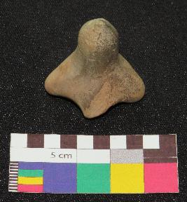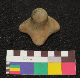 | Description / विवरण | Well fired, small size terracotta gamesman is in partly dull red and greyish color, made of well levigated clay, having thick knob with pointed top and four footed base. |