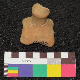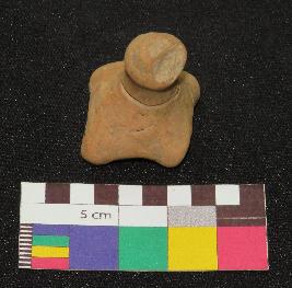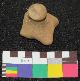 | Description / विवरण | Well fired, red color terracotta gamesman is made of well levigated clay, having smooth body, broken thick long knob and four footed squarish base. It has a incised circular mark around the knob. |