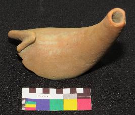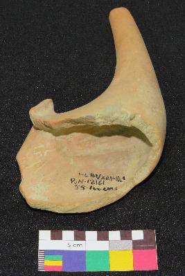 | Description / विवरण | Medium fired, handmade, terracotta feeding cup is in red color, made of well levigated clay, having smooth body, broken cup with outturned rim and a elongated spout with circular section. |