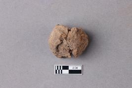 | Description / विवरण | Broken clay lump bearing an impression of a worn-out legend. |