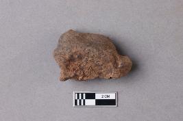 | Description / विवरण | Broken clay lump bearing a partially visible impression of a worn-out legend. |