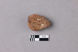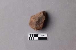 | Description / विवरण | Broken clay lump, bearing a two-line partially available inscription, the right portion is missing. The script is probably Siddhamatrika. |