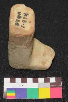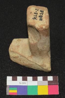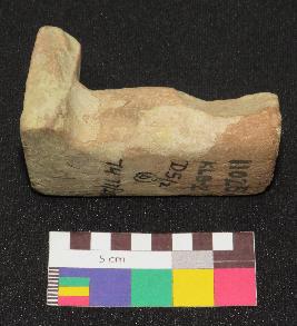 | Description / विवरण | Well fired, fragment of handmade terracotta toy cot is red in color, made of well levigated clay having slightly smooth surface, probably thick rectangular top and one thick squarish leg. |