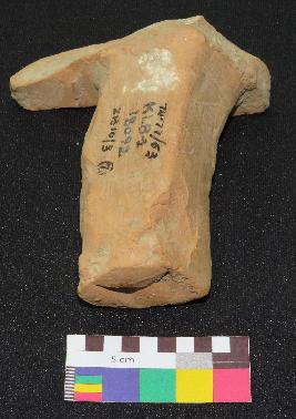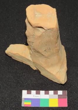 | Description / विवरण | Medium fired, fragment of handmade terracotta toy cot is in red color, made of well levigated clay, having thick flat top surface, thick squarish leg and it is roughly made. |