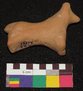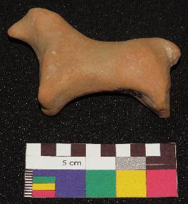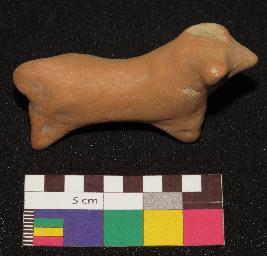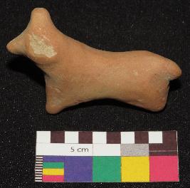 | Description / विवरण | Well fired, red color figure of dog, made of well levigated clay having one ear, face with pointed nose, neck, elongated body, joint legs and small tail. The figure does not have any facial features. |
