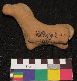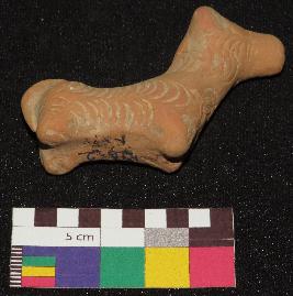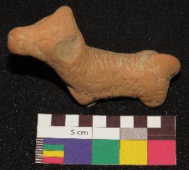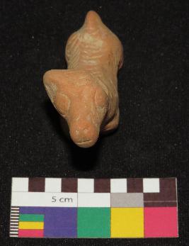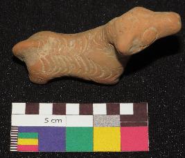 | Description / विवरण | Well fired, red color, figure of dog made of well levigated clay is in standing posture. It is having one ear, face with incised circular eyes, nose, mouth, long neck, elongated body with incised nail design all over it, joint legs and a tail. |