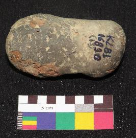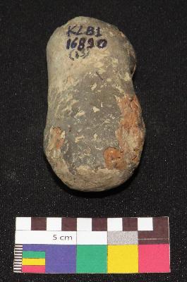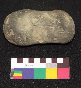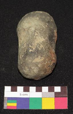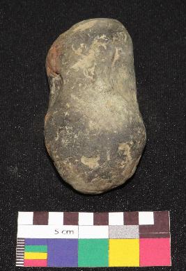 | Description / विवरण | Oval shape, small size handmade terracotta cake made of fine cay having rough surface and finger rest on either side of it. The outer surface of object is greyish in color, while core is in red color. It is roughly made. |