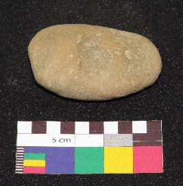 | Description / विवरण | Well fired, oval shape, small size terracotta cake is dull red in color, made of fine levigated clay having smooth surfaces and finger rest on both sides. |