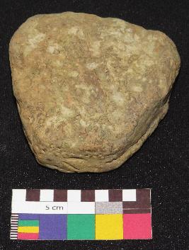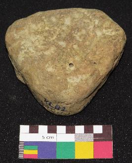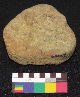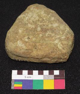 | Description / विवरण | Almost triangular shaped, small size, roughly made thick terracotta cake is dull red in color, made of semi coarse material having rough surfaces and one side have may pin size holes. |