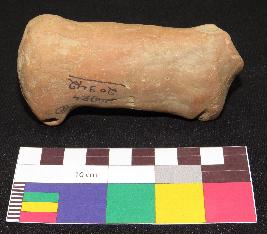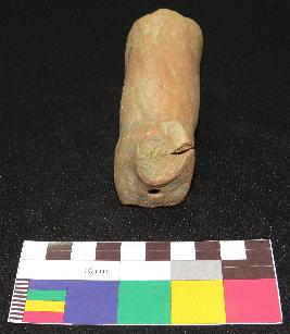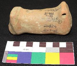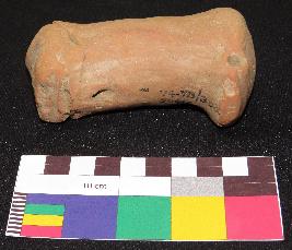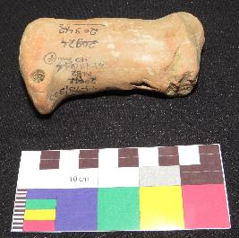 | Description / विवरण | Well fired, red color, headless terracotta bull, having prominent hump, joint legs and two perforation one at legs and other at lower part of stomach. |
