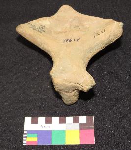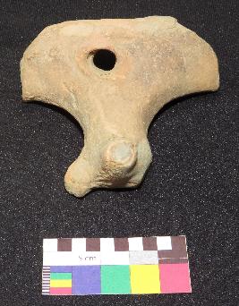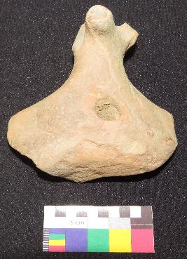 | Description / विवरण | Well fired, terracotta animal figure is in dull red color, made of well levigated clay having broken upturned horns, elongated face, neck and chest with hole. No facial features are visible. |
