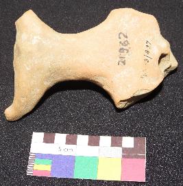 | Description / विवरण | Well fired, terracotta animal figure is in red color, made of well levigated clay, having upturned horns, face with long nose, neck and chest with a hole. It does not have any facial features on face. |