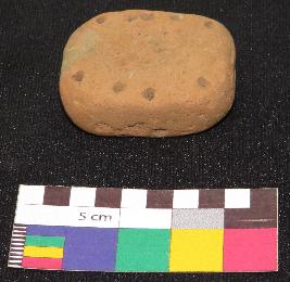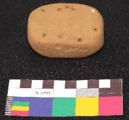 | Description / विवरण | Well fired, miniature, terracotta toy cart frame is in red color color, rectangular shape with rectangular section, made of well levigated clay. It is having curved edges, smooth body and total nine hole on top of it, five in one row and four in another. It also has a hole on small side of it. |