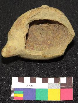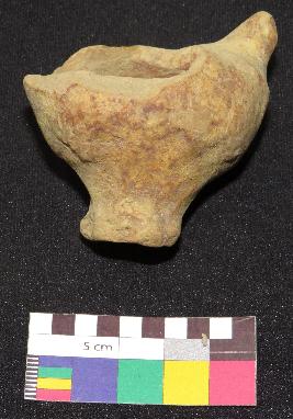 | Description / विवरण | Fragment of handmade terracotta whistle is well fired, dull red in color and made of well levigated clay, The upper part is broken and lower part is intact, standing on a small circular stand. It is having head, neck, hollow body and stand with circular base. |