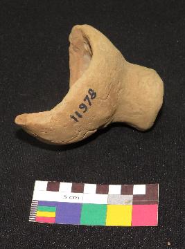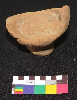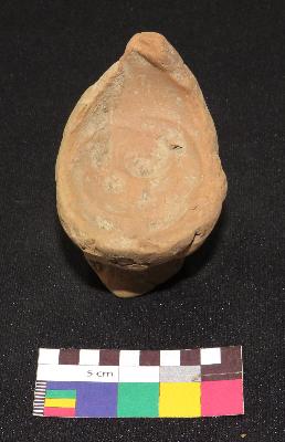 | Description / विवरण | Fragment of handmade terracotta whistle is well fired, red in color and made of well levigated clay, The upper part is broken and lower part is intact, standing on a cylindrical stand with shallow base. |