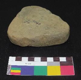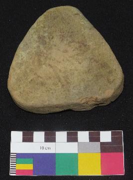 | Description / विवरण | Triangular shape, thick terracotta cake is red in color, made of semi coarse clay having slightly rough and flat surfaces. |