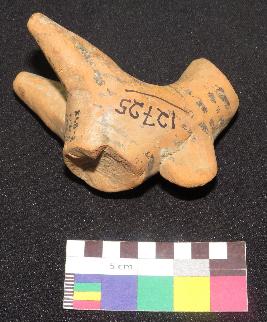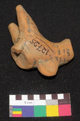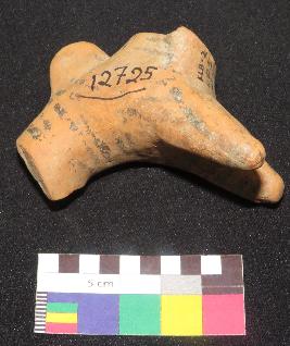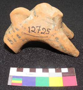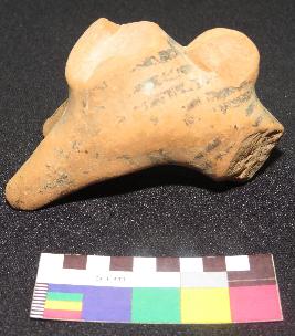 | Description / विवरण | well fired, fragmentary part of headless painted terracotta bull is red in color, made of well levigated clay, having neck, elongated body, hump on back and front two conical legs. The body has line design, painted in back color on red surface. |