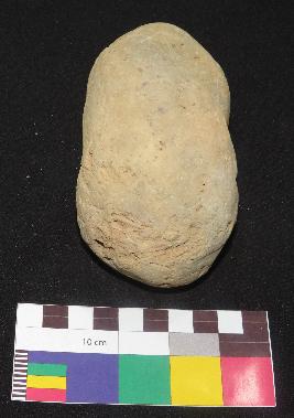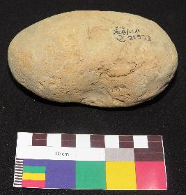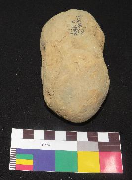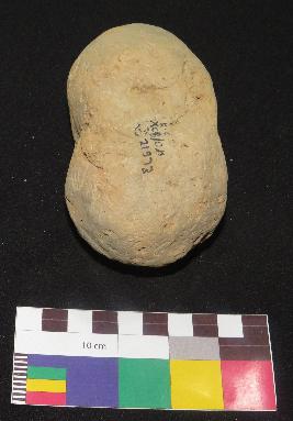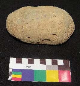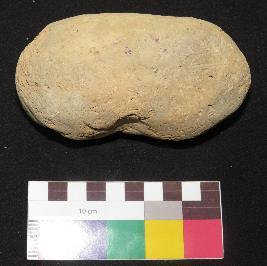 | Description / विवरण | Handmade, dull red color, oval shaped terracotta cake is made of coarse material, having rough surface, finger rest on both sides and circular section. |