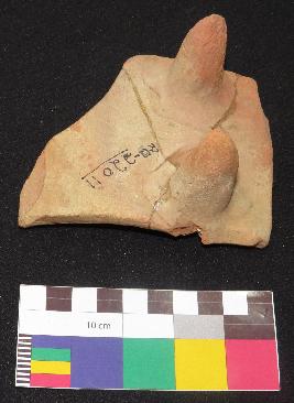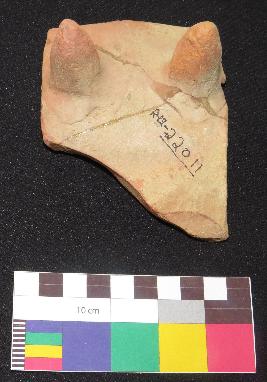 | Description / विवरण | Well fired, red color terracotta toy cot is made of well levigated clay having probably rectangular shaped, concave top and two conical pointed legs. |