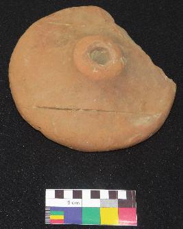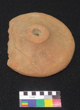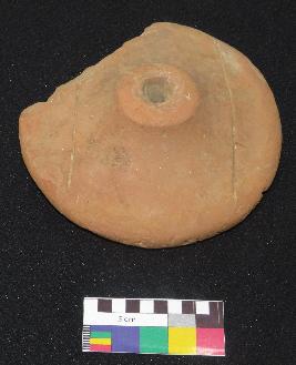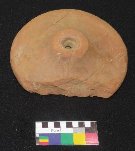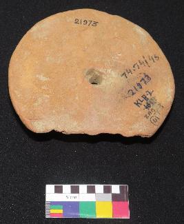 | Description / विवरण | Well fired, handmade medium size, thick decorated terracotta wheel is in red color, made of well levigated clay and in circular shape with perforated small round knob in the center. One side smooth and have two incised straight lines on either side of knob and other side is slightly rough and flat. |