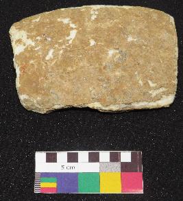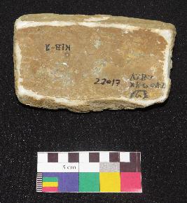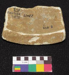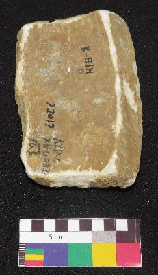 | Description / विवरण | Fragment of thick alabaster bowl is whitish in color, having flat in-turned rim and plain body. |