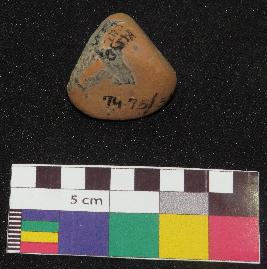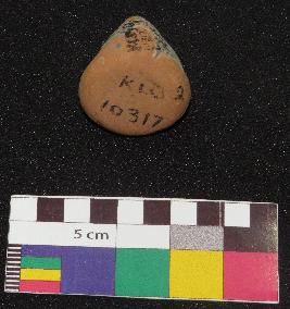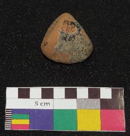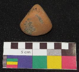 | Description / विवरण | Triangular shaped terracotta gamesman is in red color, made of well levigated clay having smooth and plain sides, blunt edges and finely made. |
