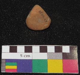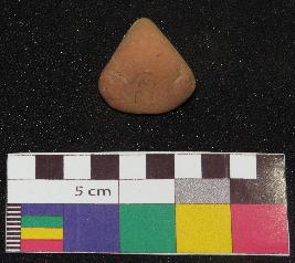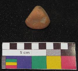 | Description / विवरण | Small size, triangular shaped terracotta gamesman is red in color, made of well levigated clay having smooth sides and finely made. |