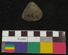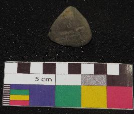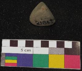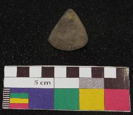 | Description / विवरण | Small size, triangular shaped terracotta gamesman is greyish in color, made of well levigated clay having smooth and plain sides, it is finely made. |