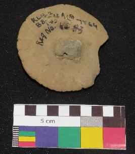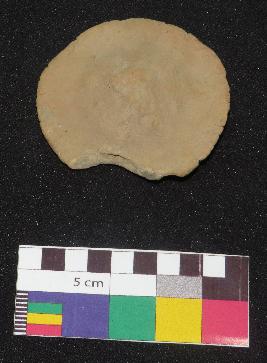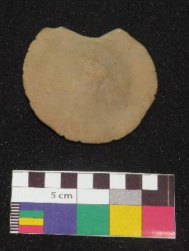 | Description / विवरण | Well fired, circular shaped small size terracotta diadem is red in color, made of well levigated clay, having smooth circular body and plain base with perforation. |